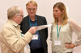 PD Dr. Hans Günter Brauch, Vorsitzender, AFES-PRESS, Mosbach, Prof. Dr. Jürgen Scheffran, Universität Hamburg und Dr. Maja Göpel, Leiterin des Berlin Büros, des Wuppertal Instituts; Foto: © Andreas Fischer, Wuppertal |