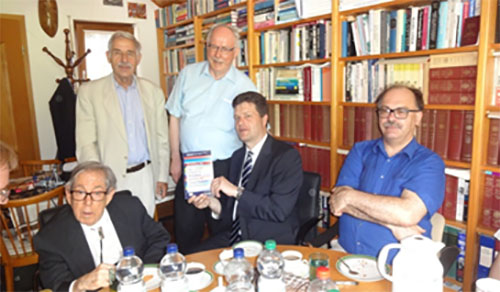 Gespräche am Rande der Eintragung von Prof. Dr. Paul Crutzen in das Goldene Buch der Stadt Mosbach (Video) am 31.5.2017 mit Prof. Dr. Jürgen Scheffran (Physik/Geographie, Univ. Hamburg), Prof. Dr. Jörg Hüfner (Em. Prof. Theoretische Physik, Univ. Heidelberg, OSTD Jochen Herkert (Mathematik/ Physik), Dr. H.G. Brauch (Politikwissenschaft, seit 1987 Vorsitzender von AFES-PRESS und seit 2020 Stifter der HGBS). |